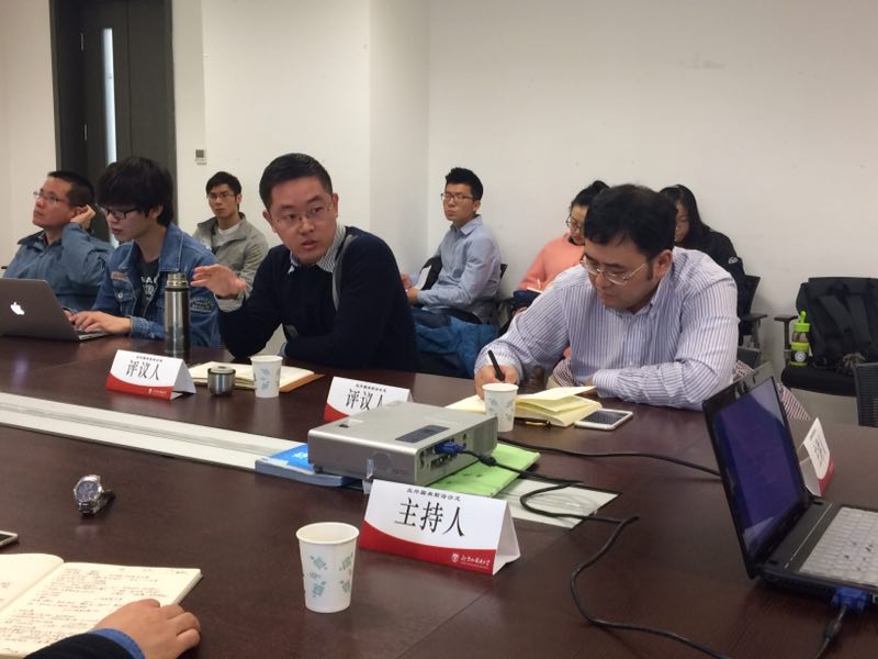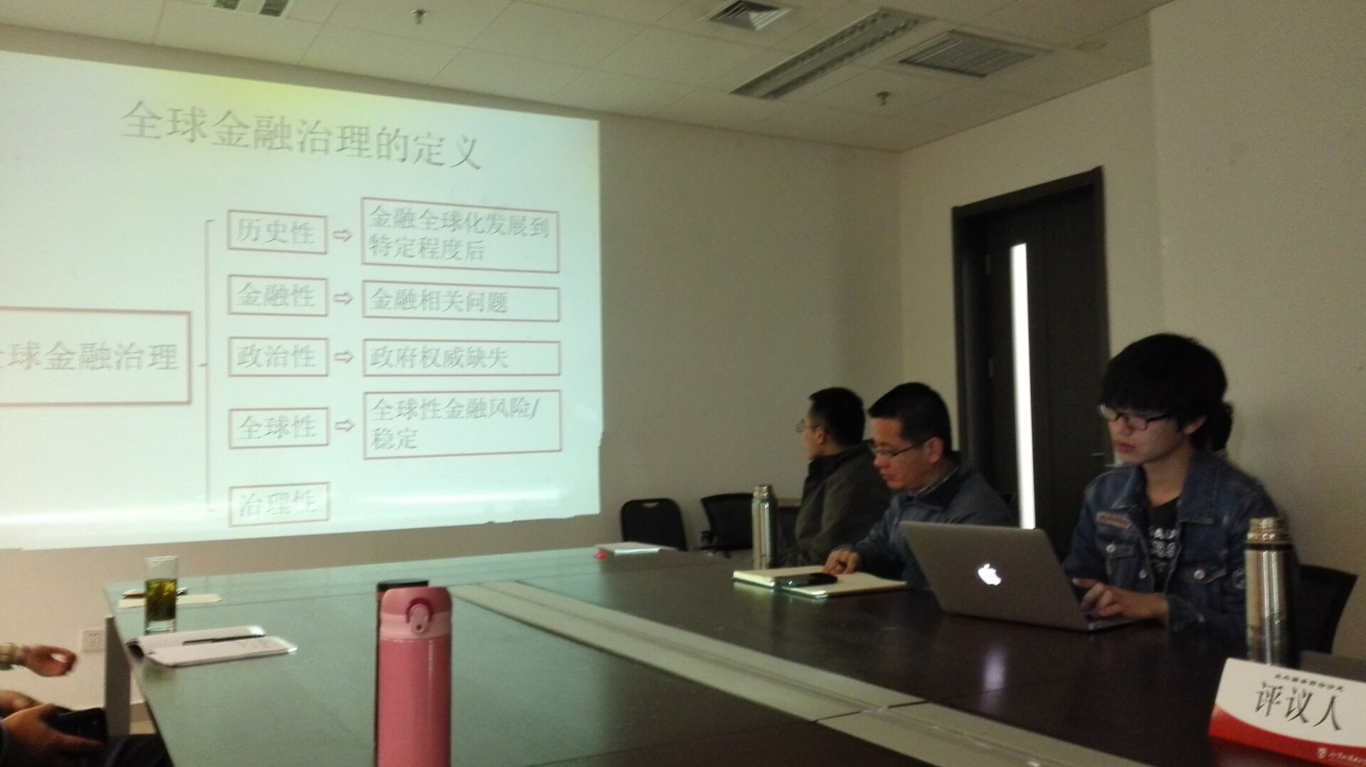 尹继武老师对张博士的演讲进行了简短的总结。他认为张先生具有很强的学术创新意识,这是当前这一领域的研究中最难能可贵的;并且他对全球金融治理进行了完整的梳理,对在座员工和老师的思考都有很大的启发。总结完毕,尹老师邀请杨毅老师和康晓老师进行评议。