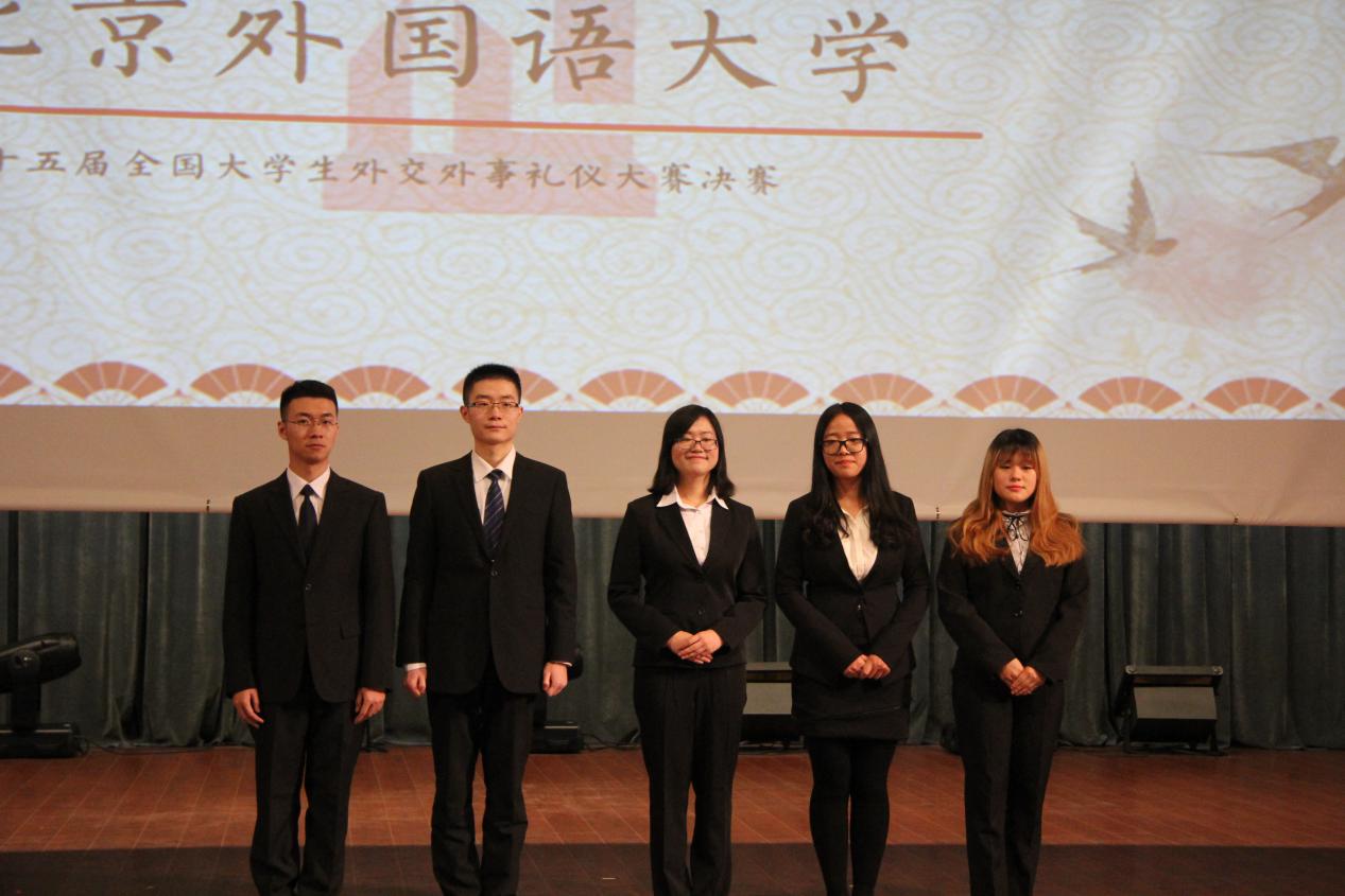 11月26至27日,第十五届全国老员工外交外事礼仪大赛在外交公司成功举行,来自澳门大学、北京大学、清华大学、外交公司等全国各地的三十支代表队展开了激烈角逐。最终,由公司2014级本科生徐颖、尚凌锋,2015级本科生李明阳,西班牙语葡萄牙语系2015级本科生程龙、杨裕嘉五位同学组成的太阳集团tyc539代表队获得了冠军。