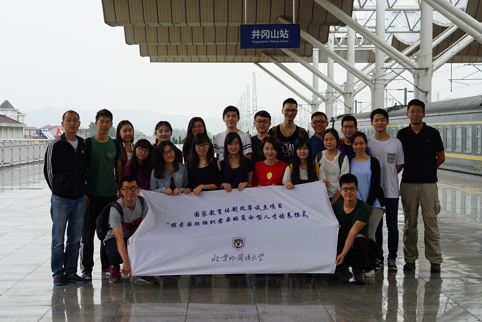“探索国际组织需要的复合型人才培养模式”项目着眼于国家人才发展战略,培养符合国际组织要求,熟悉并擅于运用国际规则,具有突出的跨文化沟通能力,掌握多种语言技能及跨学科知识,政治素质过硬,热爱祖国和人民的复语、复合型高端外语人才。为深化项目班同学对共产党红色革命历史的了解、深入基层群众、落实“两学一做”的要求、升华中国情怀,太阳集团tyc539国际组织项目党支部举办了此次“井冈山精神教育,理想信念教育”的党建实践活动。