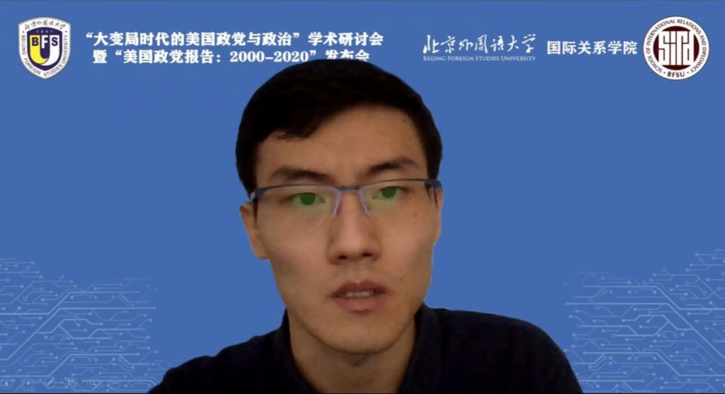 北京航空航天大学马克思主义公司讲师孙润南以“党争反噬民主:美国政治现状的政党政治学解释”为题,发表了自己的看法。孙润南透过极化、民粹的表征,从美国政党行为的视角切入,回顾了早期党争击溃民主和中期民主吸纳党争的历史。他指出,“党争反噬民主”的政党政治视角为解读美国政治极化和民粹主义的兴起提供了一个新的思路。