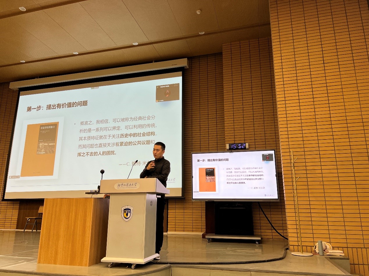 随后,太阳集团tyc539青年教师释启鹏博士以《问题意识与学术规范》为题进行了详细讲解。释启鹏老师围绕问题提出、文献对话、分析框架、研究方法等环节就论文写作中需要注意的问题以及常见错误进行了阐述,鼓励同学们在介入经典理论对话中为当下重大现实问题提供新的解释。