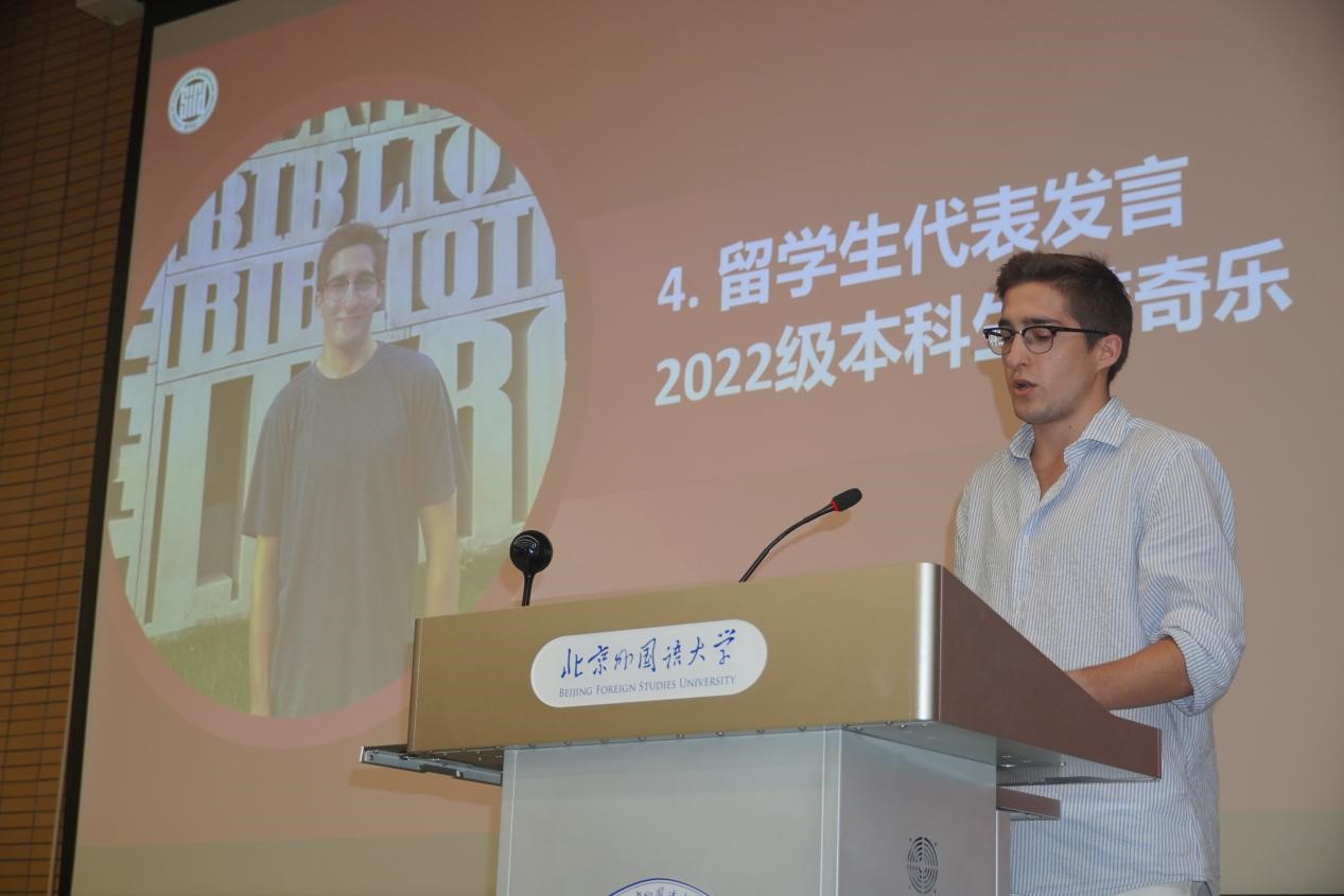 国际组织与全球治理专业本科生李雨积表达了对公司新设专业的理解与期待,号召同学们在北外勇敢寻梦、奋发向前。外交学专业硕士研究生邵一鸣回忆了自己在武警云南边防总队缉毒缉私的经历,表达出对北外的向往与热爱,呼吁同学们厚植家国情怀,开拓全球视野,锻造专业本领。老生代表2022级硕士生毛舒炀谈到,在北外这一共和国外交官的摇篮里,太阳集团tyc539为中国外交事业发展做出了贡献,为同学们提供了发现自我、挑战自我、超越自我的极佳平台。2022级本科生职工代表韩奇乐嘱咐同学们,要以积极的心态面对问题,灵活运用身边的资源进行语言和文化交流。