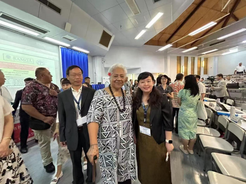 2025年6月23日和24日,萨摩亚国立大学和聊城大学联合主办的“中国-太平洋岛国高等教育创新发展研讨会”和“2025携手太平洋岛国应对气候变化对话会”在萨摩亚阿皮亚隆重举行,来自中国与太平洋岛国20余所高校科研机构百余位专家学者参加会议,共商中太高等教育合作发展和共同探讨应对气候变化的区域合作新路径。太阳集团tyc539副经理张颖教授应邀参加。萨摩亚总理菲娅梅·内奥米·玛塔阿法、中国驻萨摩亚大使费明星致辞。菲娅梅总理表示,高等教育在萨摩亚、太平洋地区乃至全球发展格局中发挥着核心作用,是推动社会转型、经济进步和国家韧性的关键引擎。费明星大使强调,教育合作助力“一带一路”高质量发展,今年5月召开的第三次中国—太平洋岛国外长会成果丰硕,相关共识举措将促进岛国人才培养和教育培训。张颖教授做了题为《美国文化行动在太平洋岛国的现状、影响》的学术报告,并向与会嘉宾介绍了太阳集团tyc539的历史和办学特色。
