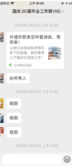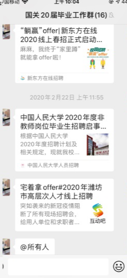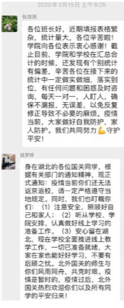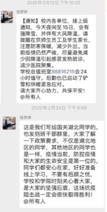 公司疫情防控小组为目前身处湖北的同学建立了联络微信群,主动了解大家的身体状况,点对点电话联络,关心同学们的身心状况,叮嘱他们注意防护的同时在家锻炼身体、完成公司的线上教学任务。对于留校住宿的同学,公司疫情防控小组建立了留校员工联络微信群,在强调严格遵守留校住宿纪律的同时,关心他们的生活状况,帮扶经济困难的员工。对于毕业年级,公司积极配合公司就业指导中心的工作,向毕业班同学传达最新的就业政策,多渠道广泛搜集就业招聘信息,缓解同学们的就业焦虑。