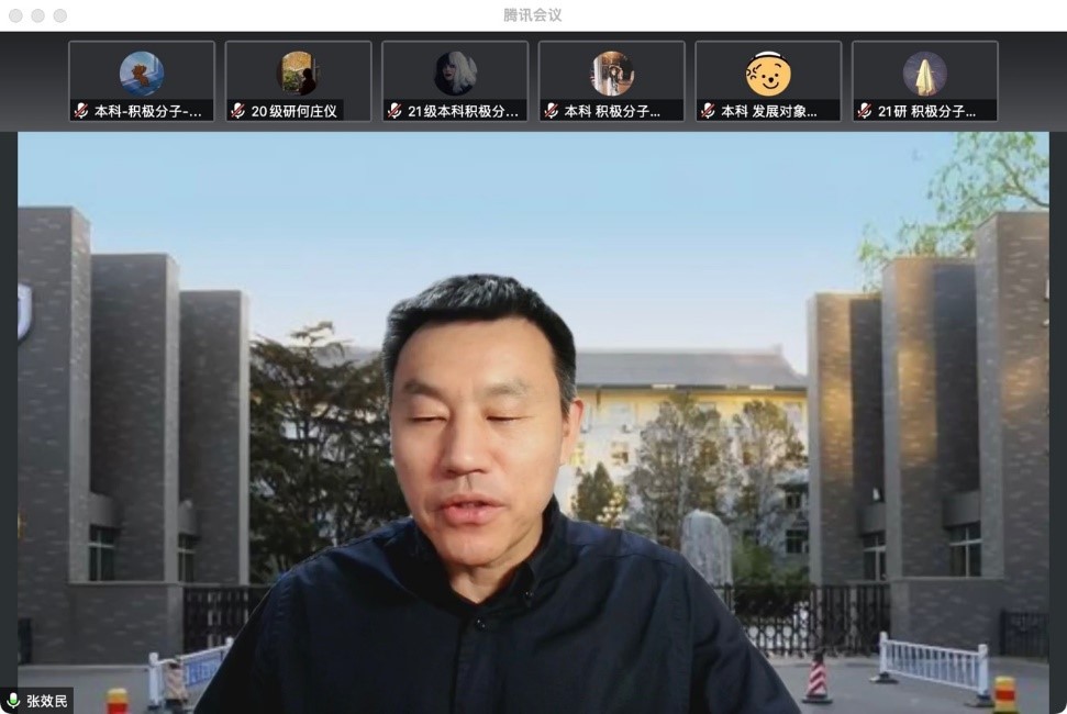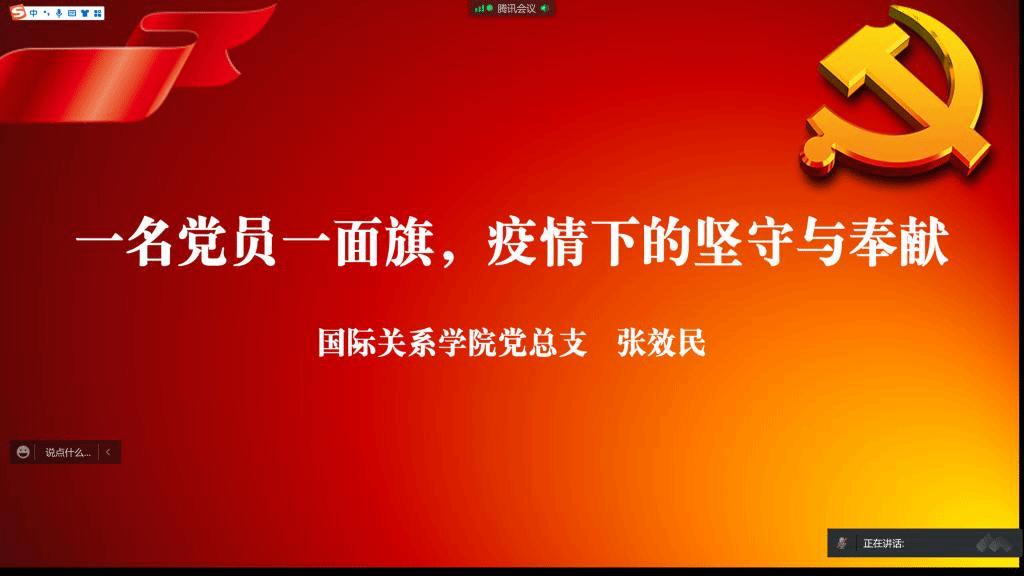 张效民书记从当前疫情形势和党员坚守奉献两个角度为大家解读了当前的疫情现状、当前中国“动态清零”政策以及公司的疫情防控举措。张效民书记强调,作为员工党员和积极分子,要以实际行动做出表率,拥护党和政府的“动态清零”政策,遵守公司疫情防控的各项规定,做好个人防护和管理,起到先锋模范作用。他指出,疫情也是考验,同学们要学会及时调整自己的心理和情绪,在疫情中成长,在危机中历练;疫情防控也是一堂爱国教育课,同学们要籍此塑造中国情怀,反驳批判西方对中国疫情以及中国防控政策的歪曲、抹黑和污名化,利用可能的机会讲好中国抗疫故事;作为国际关系专业的员工,要发挥学业专长,认真研究疫情下的国际政治议题和国别政治议题,提升自己的专业本领。最后张效民书记解答了员工关于当前公司疫情防控政策的一系列问题。