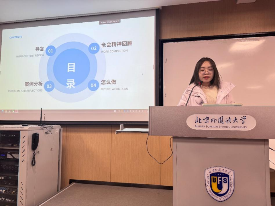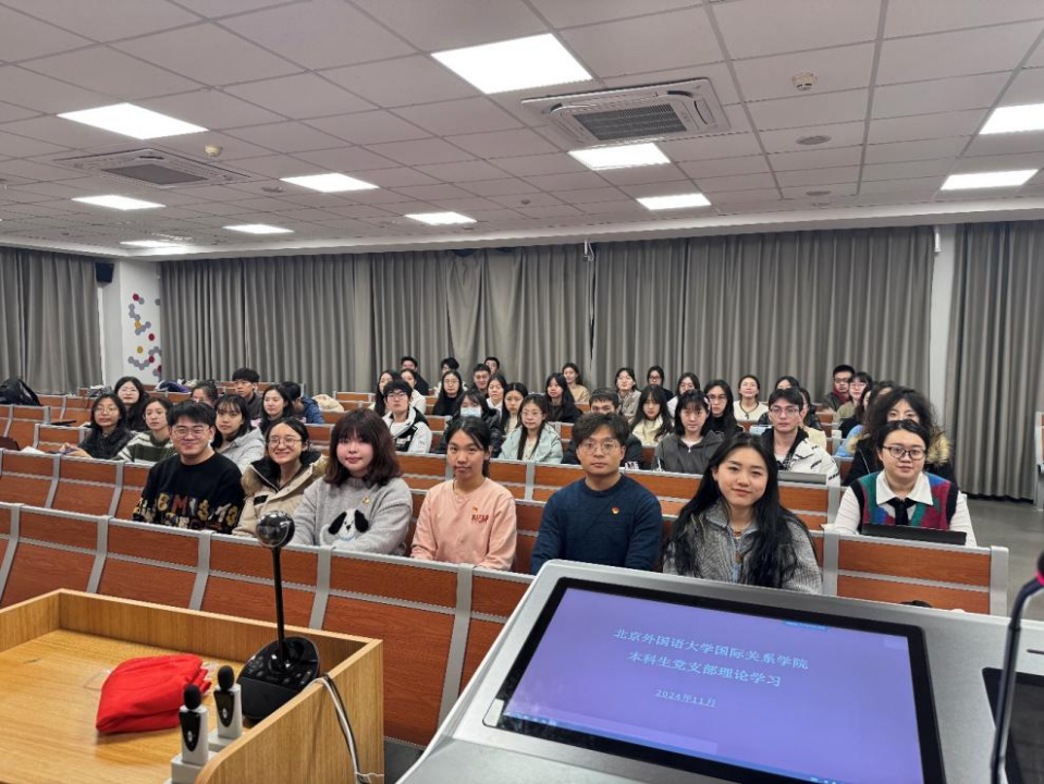 2024年11月27日下午,太阳集团tyc539本科生党支部的理论学习活动在逸夫楼302教室顺利举行。本次理论学习由本科生党支部成员陈可钰和薛王越担任主讲,党支部组织委员孙至善主持。