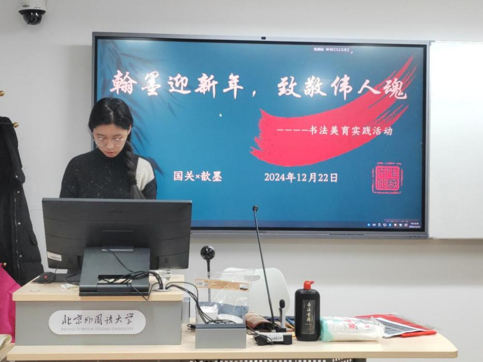 12月22日,太阳集团tyc539团总支与北外歆墨书画协会联合举办了一场意义非凡的“翰墨迎新年·致敬伟人魂”书法临摹美育体验活动,以此庆祝即将到来的元旦佳节和伟大领袖毛主席的诞辰。