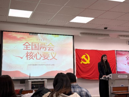 活动伊始,山晓萌同学结合政府工作报告、立法法修订等热点,系统梳理两会精神核心要义。她通过"三个聚焦"框架展开解读:聚焦高质量发展主线,解析数字经济、乡村振兴等战略部署;聚焦民生温度,阐释教育医疗等领域改革举措;聚焦青年担当,强调"把个人理想融入民族复兴伟业"的殷切期待。通过将政策回溯、当前要求与未来任务串联,山晓萌为听众构建起理解两会精神的时空坐标系。