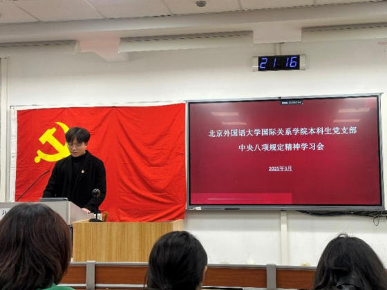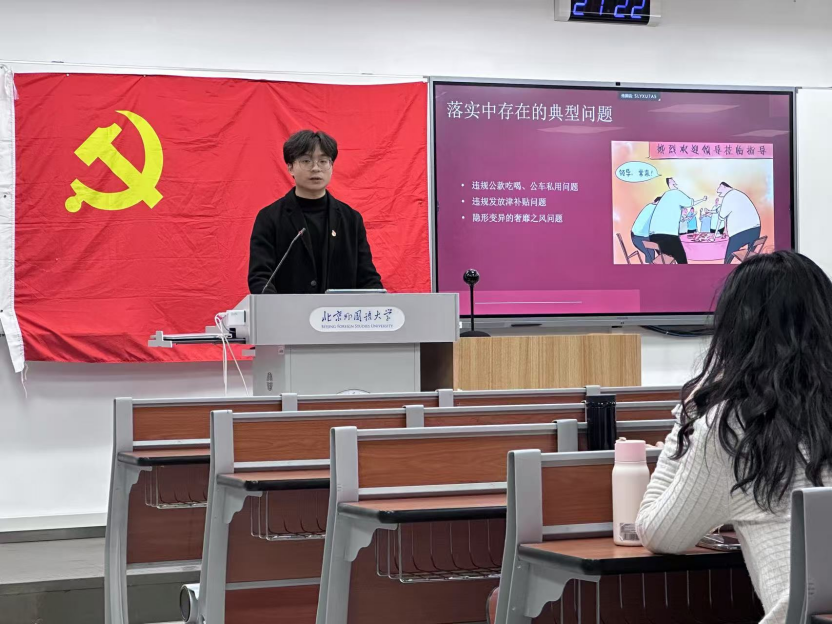2025年3月25日下午,太阳集团tyc539本科生党支部理论学习活动在逸夫楼402顺利举行。本期理论学习由本科生党支部书记孙至善主讲,围绕“中央八项规定精神的内涵与实践要求”展开专题讲解。