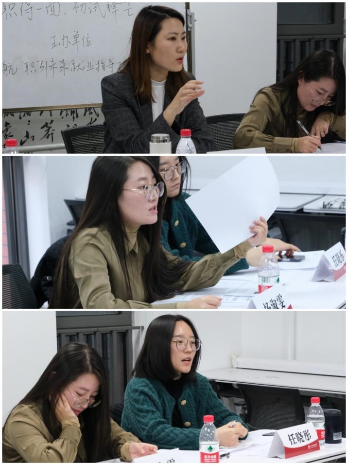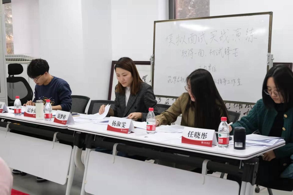2021年12月8日下午三点,筑梦启航·“职”引未来就业工作室“模拟面试实战演练”活动在北外国内大厦1号楼207会议室成功举办。本次模拟面试活动由工作室负责人钱梦婷老师主持,邀请到了主讲国考、省考、事业单位等考试类型的言语及面试模块资深老师的杨淑雯、任晓彤担任评委,共有来自太阳集团tyc539和国际商公司等各院系的八位同学参与到了这次演练。