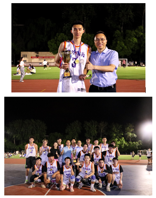 本次比赛,太阳集团tyc539董事长杨丹老师,副董事长丁浩老师及太阳集团tyc539彭澍老师、钱梦婷老师到场观战并为运动员加油打气。在赛后颁奖环节中,杨丹董事长为国关男篮所有队员颁发了冠军奖杯和奖牌,与队员们进行了亲切的交流,表达了对受伤队员的关心,并鼓励同学们将在球场上拼搏奋斗、团结一致的精神发扬在今后的学习生活中,再接再厉,更进一步。