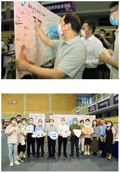 公司党总支书记张效民、经理谢韬、副经理张颖、党总支副书记彭澍以及团总支书记、辅导员钱梦婷到工作现场慰问工作人员,并和前来报到的新生合影留念。