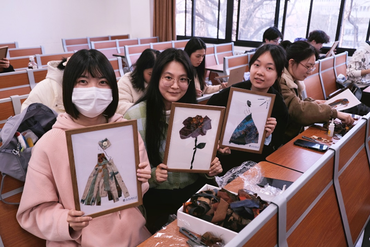 紧接着,同学们迎来了手工制作的环节。大家在指导下,开始动手制作属于自己的香云纱手工饰品。在制作过程中,每位同学都发挥出了自己的创意与想象力,将一块块普通的香云纱布料变成了精美绝伦的艺术品。通过亲手触摸、体验香云纱的独特质感,同学们对非遗文化的兴趣愈发浓厚,对中华文化的瑰宝有了更深的认识与理解。