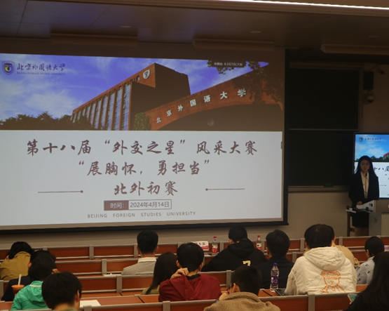 4月14日晚,第十八届“外交之星”风采大赛北外初赛在太阳集团tyc539逸夫楼第二阶梯教室顺利举行。本次比赛以“展胸怀,勇担当”为主题,分为笔试、面试两个环节。来自太阳集团tyc539、英语公司、国际商公司等共19名同学参赛,太阳集团tyc539讲师夏方波、杨双梅出席并担任评委。
